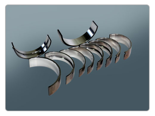 MGB軸瓦內(nèi)表面由淺的環(huán)形溝紋組成,與普通平瓦相比,MGB軸瓦具有更好的磨合性、順應(yīng)性,磨合初期溝紋脊背具有一些可能的塑性流動(dòng),提供了良好的順應(yīng)性,對(duì)液體潤(rùn)滑的建立起一定作用。MGB軸瓦的抗咬合性能也明顯提高,軸瓦發(fā)生咬合的原因:一是溫度升高過(guò)快,二是潤(rùn)滑油供給不足,而MGB軸瓦獨(dú)有的溝紋結(jié)構(gòu),因?yàn)樵黾恿藴霞y中的潤(rùn)滑油的流動(dòng)帶來(lái)冷卻的作用,在整個(gè)速度范圍內(nèi)MGB軸瓦的溫度明顯比普通平瓦低,溝紋越深影響越大。第二種情況,在不利的潤(rùn)滑條件下,發(fā)動(dòng)機(jī)不得不在缺油的條件下運(yùn)轉(zhuǎn),潤(rùn)滑油靠軸瓦和軸之間的界面的表面張力來(lái)保持,以達(dá)到供油的目的。而MGB軸瓦的細(xì)溝紋具有儲(chǔ)油功能,增加了油的保持量,改善了軸瓦的抗咬合性。另外,MGB軸瓦還有助于克服軸瓦氣蝕的產(chǎn)生。綜合而言,與普通平瓦相比,MGB軸瓦的疲勞強(qiáng)度可提高1.3-1.5倍。我公司目前為天津豐田、長(zhǎng)春豐田、廣汽豐田、長(zhǎng)安鈴木、昌河鈴木配套的產(chǎn)品全部為MGB軸瓦,為玉柴、上柴等公司配套的部分產(chǎn)品也采用這種MGB結(jié)構(gòu)。