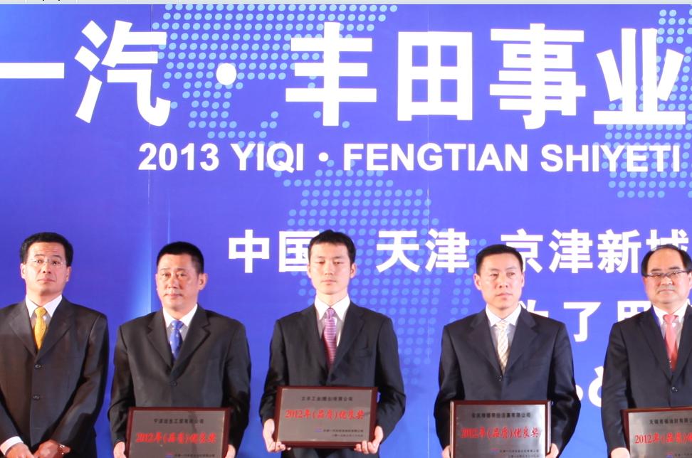 2013年3月29日,內(nèi)藤靖之部長代表TCY參加了在天津舉行的2013年度一汽豐田集團供應(yīng)商大會。會中與TFTE延時部長,金井副部長,SFTM加藤增經(jīng)理以及TTCC寺町副總經(jīng)理進行友好會晤。在會后的供應(yīng)商表彰大會中,我司獲得天津一汽豐田發(fā)動機有限公司和一汽豐田(長春)發(fā)動機有限公司兩家公司的“2012年度品質(zhì)優(yōu)良獎”。這代表著一汽豐田集團的兩家主機廠對我司2012年度的質(zhì)量管理以及售后服務(wù)的充分肯定和嘉許。