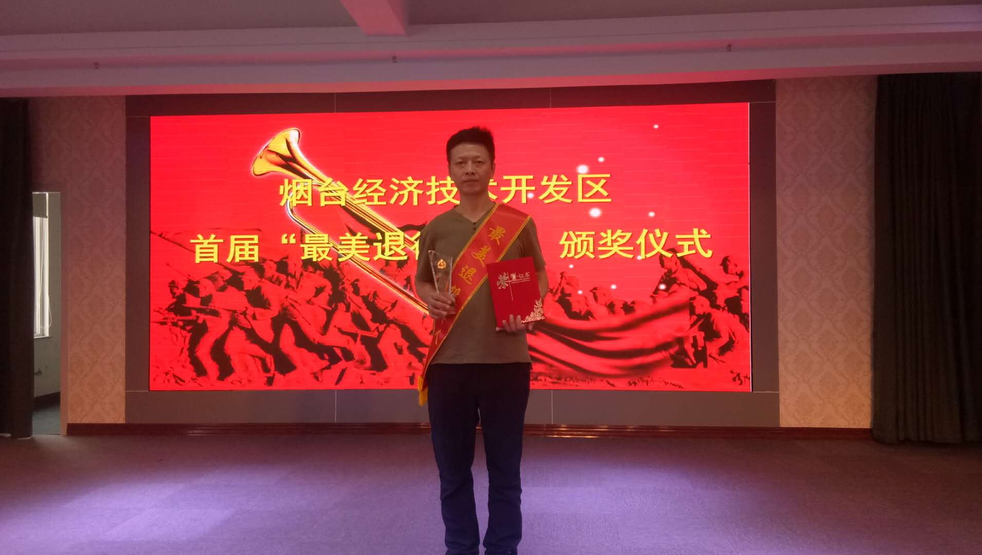 為了慶祝中國人民解放軍建軍93周年,煙臺開發區工委黨群工作辦及開發區人力資源保障局聯合舉辦煙臺開發區“最美退伍軍人”評選活動,我公司D系科科長王道山,經過投票選舉,被評為最美退伍軍人,開發區工委群工辦頒發證書和獎杯,以資鼓勵。